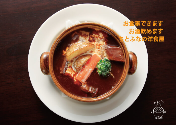ゴロッとした牛肉を長時間かけてじっくり煮込んだホロホロビーフシチュー。濃厚なデミグラスソースにほろけるお肉がたまりません。ワインなどともよく合います。ランチでもお召し上がり頂けますので1度ご賞味ください。